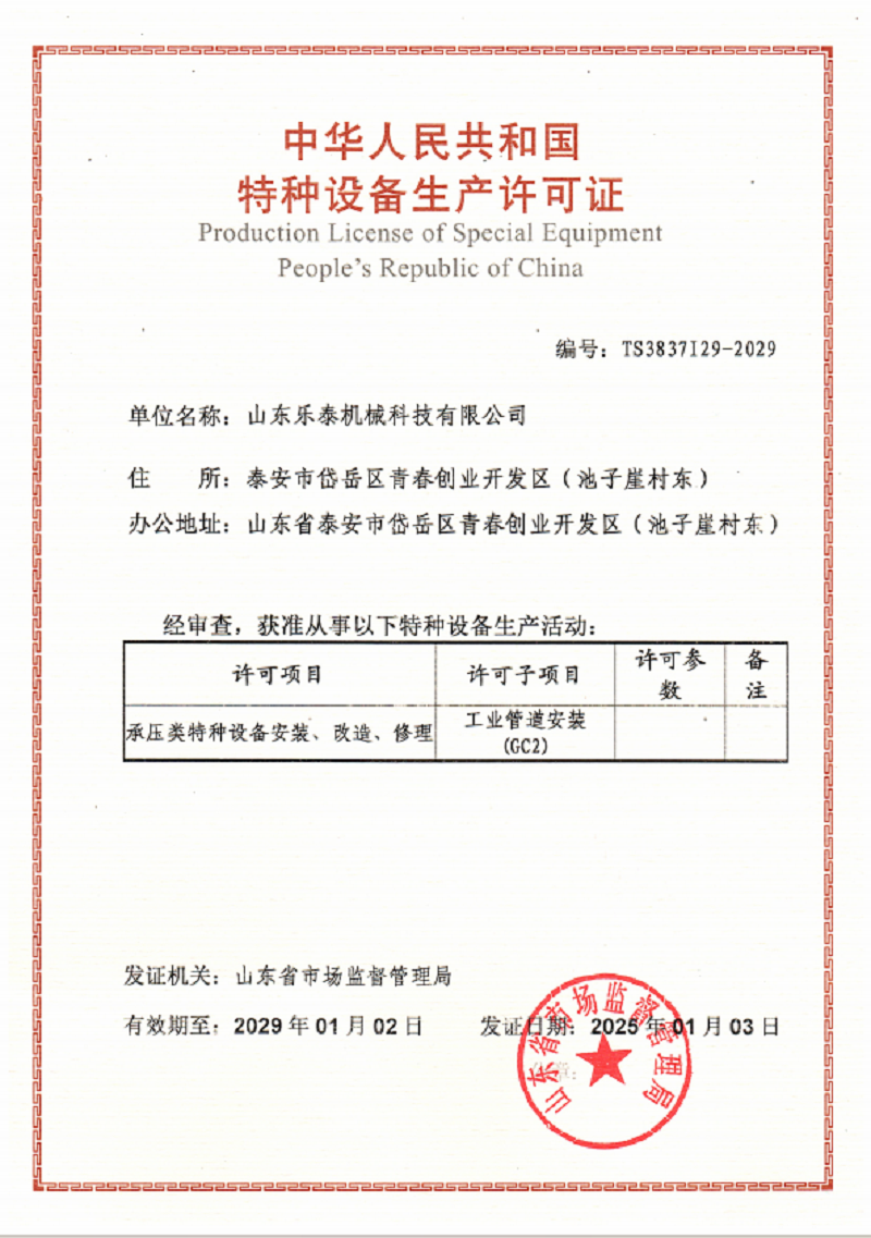 山東樂泰機械科技有限公司始建于2013年,是一家股份制高新技術企業,擁有140多名各類中高級技術和技能人才,購置了大型激光切割機等先進生產設備和粗糙度檢測儀等精密檢測設備。公司具有D級壓力容器的設計及制造資質,通過了ISO9001質量管理體系認證和3C認證。 公司專注于中厚板及薄壁不銹鋼非標儲罐、發酵罐、種子罐、臥式結晶機、立式結晶罐、提取罐、雙層酒精罐、沉降罐、流化床等干燥系統設備的設計及制造。我們致力于為淀粉糖、生物發酵、制藥、釀酒、調味品、飲料、果蔬汁、乳制品、大豆分離蛋白、酶制劑、樹脂吸附等領域提供不銹鋼成套裝備。多年來,我們已經為全國百家客戶提供了服務,并成功出口產品到法國、智利、美國、土耳其和越南等國家。